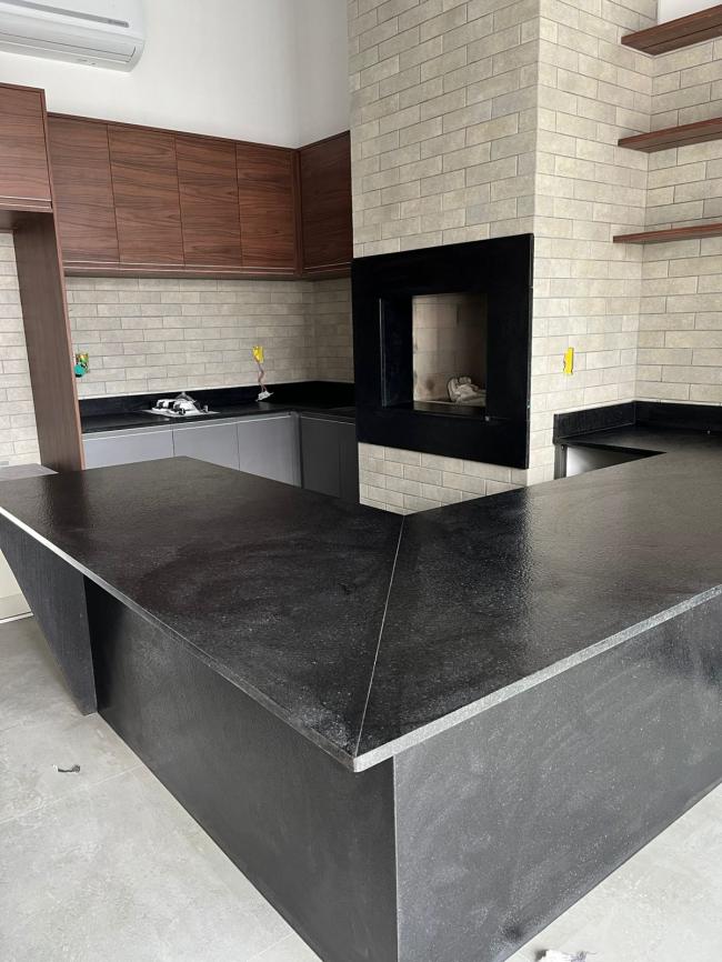 Área Gourmet em Granito Preto São Gabriel Escovado