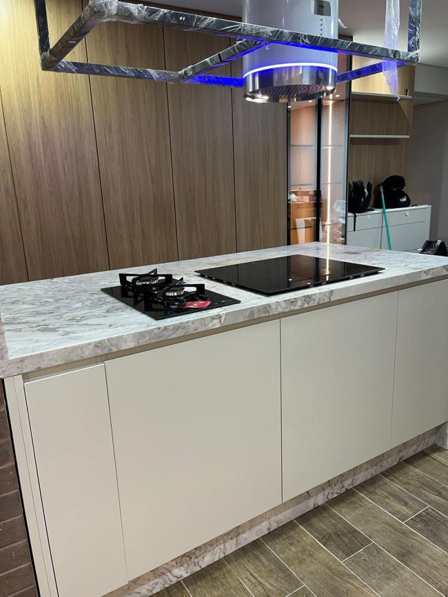 Ilha central em Mármore Branco Paraná
